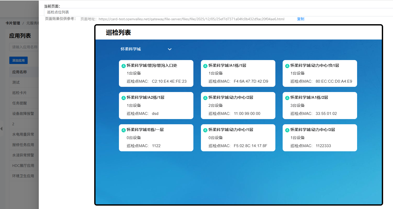 选中某条记录,点击操作栏下面的“预览”,打开预览窗口,可查看当前应用下的所有卡片。如下图所示: